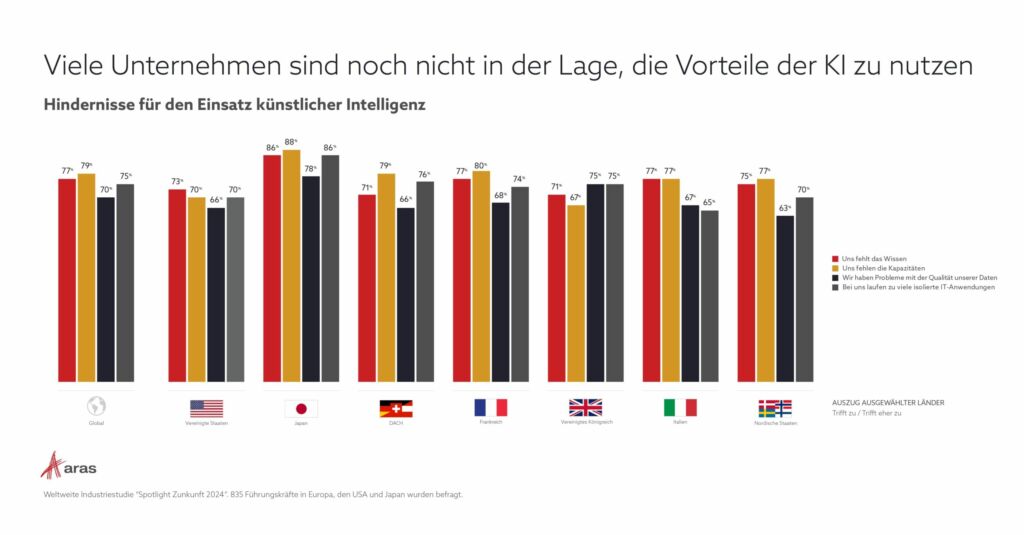Die Integration von KI in PLM-Plattformen kann als Effizienzbooster, Kostensenker und Innovationstreiber dienen. Doch bis dahin ist es noch ein weiter Weg, wie die in der Aras-Studie befragten Unternehmen einräumen: Fast 80 Prozent fehlen derzeit noch das Wissen oder die Kapazitäten, um KI erfolgreich einzusetzen.